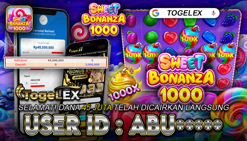 Jackpot TOGELEX Slot Game SWEET BONANZA 1000 Cuan Rp 45.000.000,- Dibayar Lunas