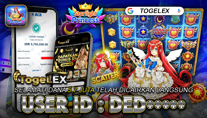 TOGELEX mengucapkan selamat kepada pemilik User ID: DED**** yang berhasil meraih kemenangan besar dalam permainan STARLIGHT PRINCESS dengan total kemenangan sebesar Rp 5.700.000. Setelah pemenang mengajukan formulir penarikan dana, proses withdraw berhasil diselesaikan dalam waktu sekitar 5–10 menit, dan dana langsung ditransfer ke rekening yang terdaftar. Bukti transfer yang kami tampilkan merupakan bukti resmi dan valid, sesuai dengan transaksi yang tercatat pada bank tujuan.