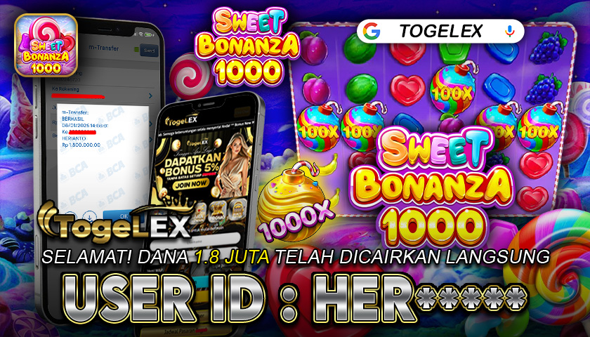 Jackpot TOGELEX Slot Game SWEET BONANZA 1000 Cuan Rp 1.800.000,- Dibayar Lunas
