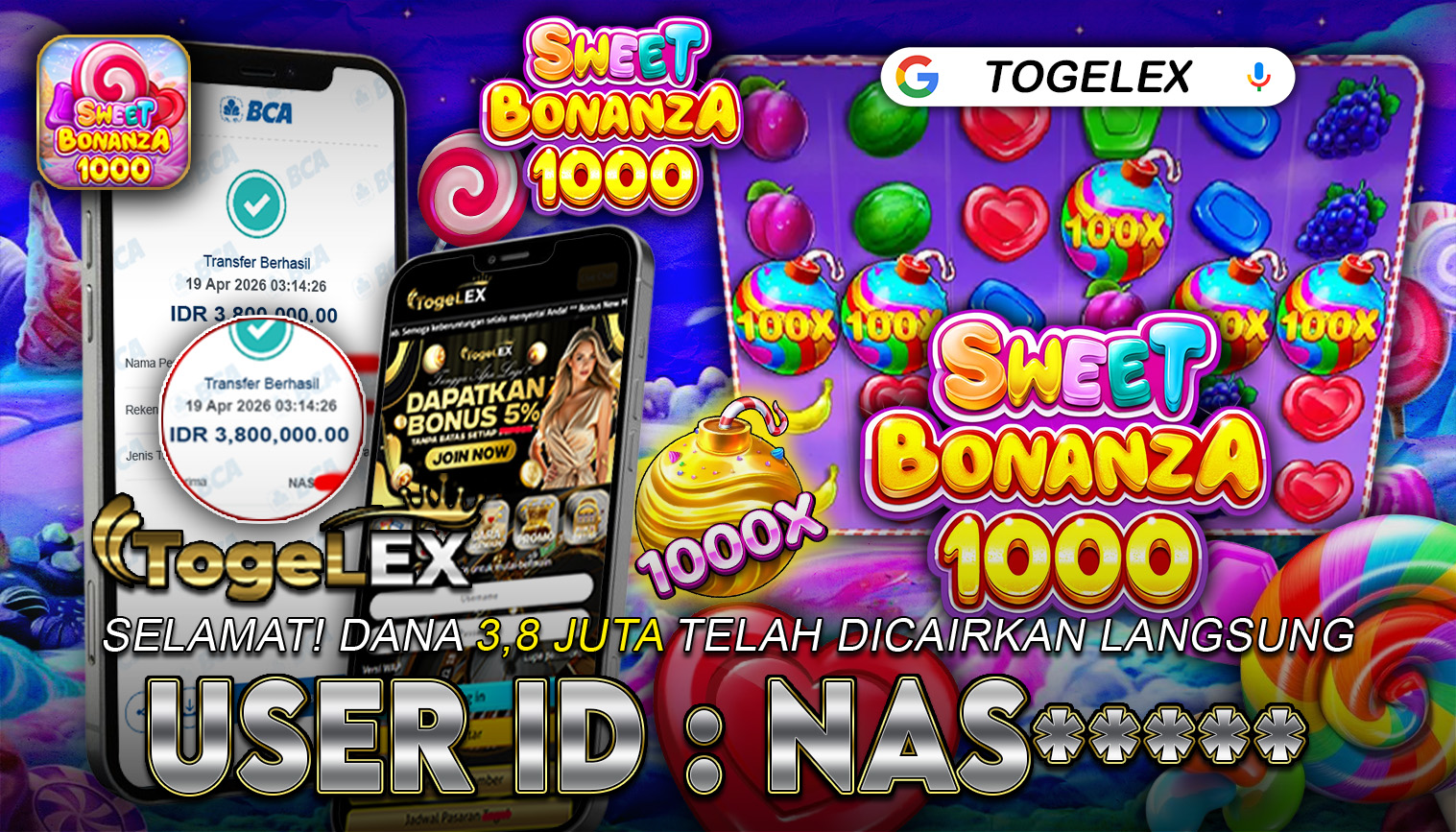 TOGELEX mengucapkan selamat kepada pemilik User ID: NAS**** yang berhasil meraih kemenangan besar dalam permainan SWEET BONANZA 1000 dengan total kemenangan sebesar Rp 3.800.000. Setelah pemenang mengajukan formulir penarikan dana, proses withdraw berhasil diselesaikan dalam waktu sekitar 5–10 menit, dan dana langsung ditransfer ke rekening yang terdaftar. Bukti transfer yang kami tampilkan merupakan bukti resmi dan valid, sesuai dengan transaksi yang tercatat pada bank tujuan.
