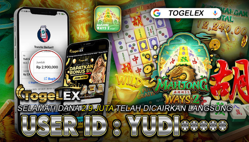 Selamat kepada member dengan User ID: YUDI***** yang baru saja meraih kemenangan besar dalam permainan MAHJONG WAYS 2 dengan total hadiah sebesar Rp 2.900.000. Setelah melakukan pengajuan withdraw, hanya dalam kurun waktu sekitar 2–5 menit pihak Togelex langsung memproses transfer dana ke rekening pemenang, dan saldo pun berhasil dicairkan tanpa kendala. Bukti transaksi yang kami tampilkan adalah ASLI dan TERVALIDASI, langsung diperoleh dari hasil transfer resmi melalui bank tujuan.