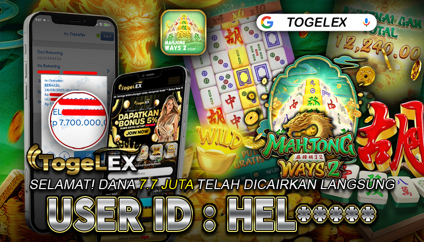 Selamat kepada member dengan User ID: HEL***** yang baru saja meraih kemenangan besar dalam permainan MAHJONG WAYS 2 dengan total hadiah sebesar Rp 7.700.000. Setelah melakukan pengajuan withdraw, hanya dalam kurun waktu sekitar 2–5 menit pihak Togelex langsung memproses transfer dana ke rekening pemenang, dan saldo pun berhasil dicairkan tanpa kendala. Bukti transaksi yang kami tampilkan adalah ASLI dan TERVALIDASI, langsung diperoleh dari hasil transfer resmi melalui bank tujuan.