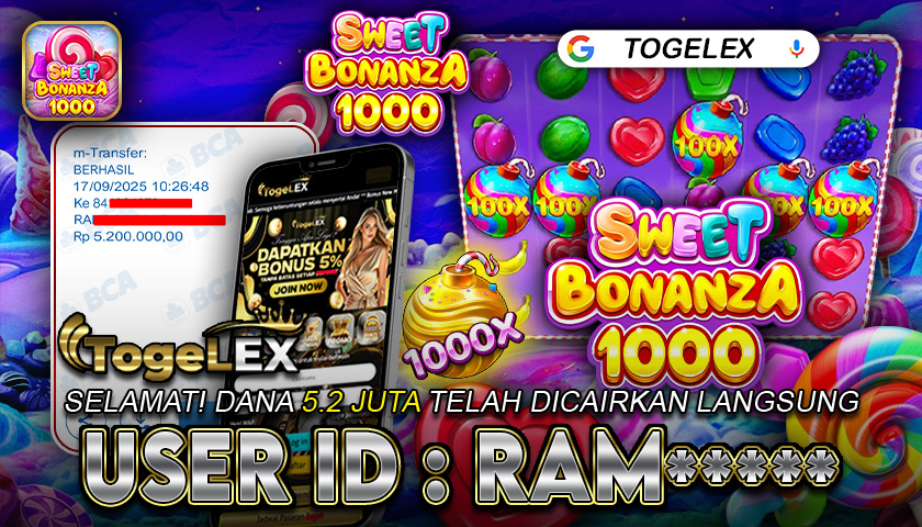 TOGELEX BUKTI JACKPOT SWEET BONANZA 1000 – Rp 5.200.000 LUNAS !