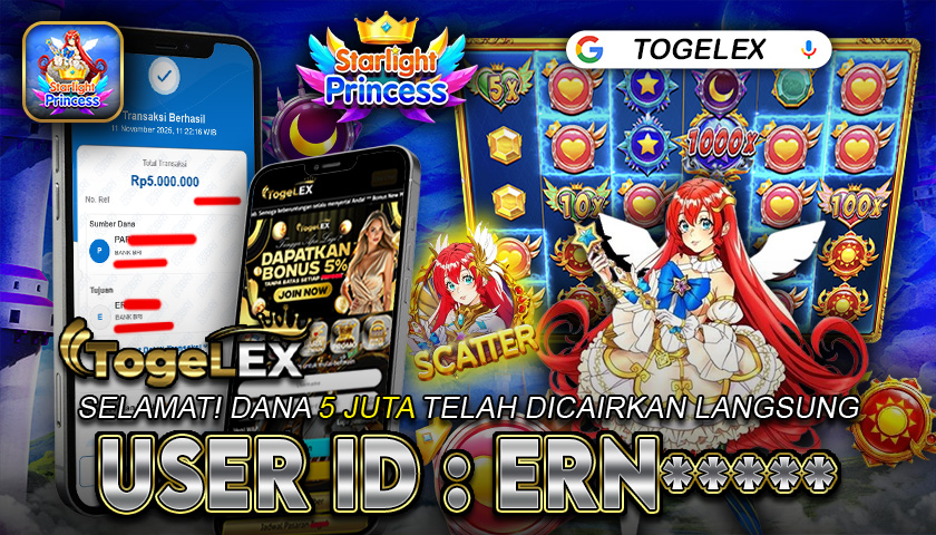 Selamat kepada member dengan User ID: ERN***** yang baru saja meraih kemenangan besar dalam permainan STARLIGHT PRINCESS dengan total hadiah sebesar Rp 5.000.000. Setelah melakukan pengajuan withdraw, hanya dalam kurun waktu sekitar 2–5 menit pihak Togelex langsung memproses transfer dana ke rekening pemenang, dan saldo pun berhasil dicairkan tanpa kendala. Bukti transaksi yang kami tampilkan adalah ASLI dan TERVALIDASI, langsung diperoleh dari hasil transfer resmi melalui bank tujuan.