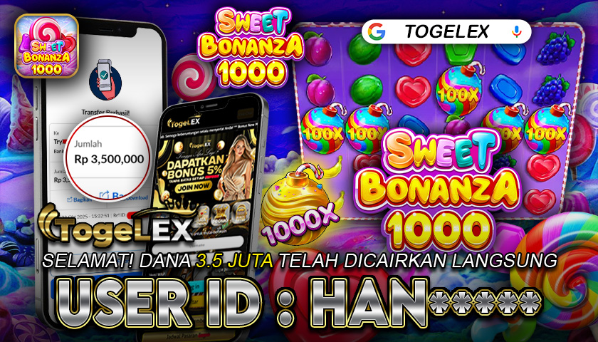 Selamat kepada member dengan User ID: HAN***** yang baru saja meraih kemenangan besar dalam permainan SWEET BONANZA 1000 dengan total hadiah sebesar Rp 3.500.000. Setelah melakukan pengajuan withdraw, hanya dalam kurun waktu sekitar 2–5 menit pihak Togelex langsung memproses transfer dana ke rekening pemenang, dan saldo pun berhasil dicairkan tanpa kendala. Bukti transaksi yang kami tampilkan adalah ASLI dan TERVALIDASI, langsung diperoleh dari hasil transfer resmi melalui bank tujuan.