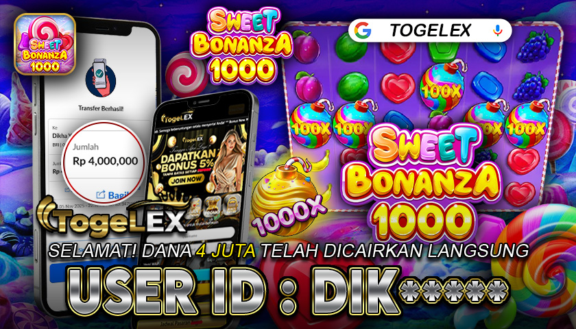 Selamat kepada member dengan User ID: DIK***** yang baru saja meraih kemenangan besar dalam permainan SWEET BONANZA 1000 dengan total hadiah sebesar Rp 4.000.000. Setelah melakukan pengajuan withdraw, hanya dalam kurun waktu sekitar 2–5 menit pihak Togelex langsung memproses transfer dana ke rekening pemenang, dan saldo pun berhasil dicairkan tanpa kendala. Bukti transaksi yang kami tampilkan adalah ASLI dan TERVALIDASI, langsung diperoleh dari hasil transfer resmi melalui bank tujuan.