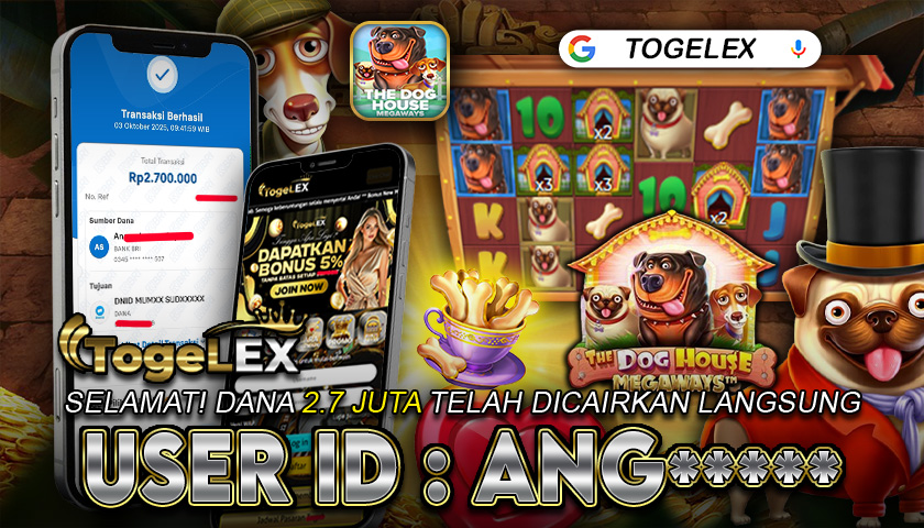 Selamat kepada member dengan User ID: ANG***** yang baru saja meraih kemenangan besar dalam permainan THE DOG HOUSE MEGAWAYS dengan total hadiah sebesar Rp 2.700.000. Setelah melakukan pengajuan withdraw, hanya dalam kurun waktu sekitar 2–5 menit pihak Togelex langsung memproses transfer dana ke rekening pemenang, dan saldo pun berhasil dicairkan tanpa kendala. Bukti transaksi yang kami tampilkan adalah ASLI dan TERVALIDASI, langsung diperoleh dari hasil transfer resmi melalui bank tujuan.