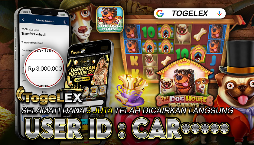 Selamat kepada member dengan User ID: CAR***** yang baru saja meraih kemenangan besar dalam permainan THE DOG HOUSE MEGAWAYS dengan total hadiah sebesar 3.000.000. Setelah melakukan pengajuan withdraw, hanya dalam kurun waktu sekitar 2–5 menit pihak Togelex langsung memproses transfer dana ke rekening pemenang, dan saldo pun berhasil dicairkan tanpa kendala. Bukti transaksi yang kami tampilkan adalah ASLI dan TERVALIDASI, langsung diperoleh dari hasil transfer resmi melalui bank tujuan.