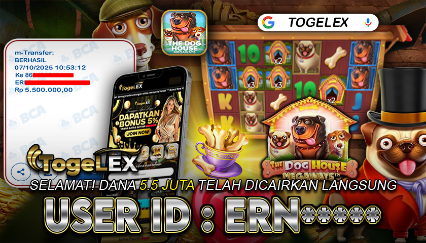 Selamat kepada member dengan User ID: ERN***** yang baru saja meraih kemenangan besar dalam permainan THE DOG HOUSE MEGAWAYS dengan total hadiah sebesar Rp 5.500.000. Setelah melakukan pengajuan withdraw, hanya dalam kurun waktu sekitar 2–5 menit pihak Togelex langsung memproses transfer dana ke rekening pemenang, dan saldo pun berhasil dicairkan tanpa kendala. Bukti transaksi yang kami tampilkan adalah ASLI dan TERVALIDASI, langsung diperoleh dari hasil transfer resmi melalui bank tujuan.
