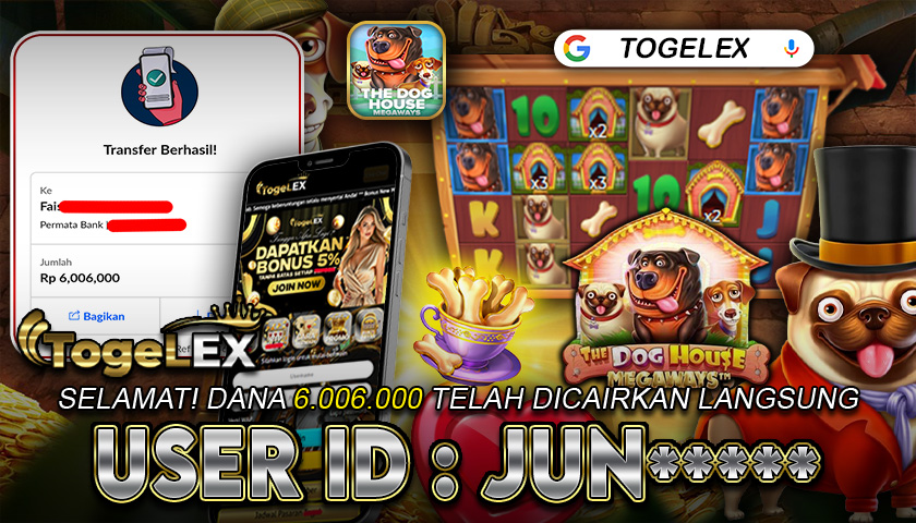 Selamat kepada member dengan User ID: JUN***** yang baru saja meraih kemenangan besar dalam permainan THE DOG HOUSE MEGAWAYS dengan total hadiah sebesar 6.006.000. Setelah melakukan pengajuan withdraw, hanya dalam kurun waktu sekitar 2–5 menit pihak Togelex langsung memproses transfer dana ke rekening pemenang, dan saldo pun berhasil dicairkan tanpa kendala. Bukti transaksi yang kami tampilkan adalah ASLI dan TERVALIDASI, langsung diperoleh dari hasil transfer resmi melalui bank tujuan.