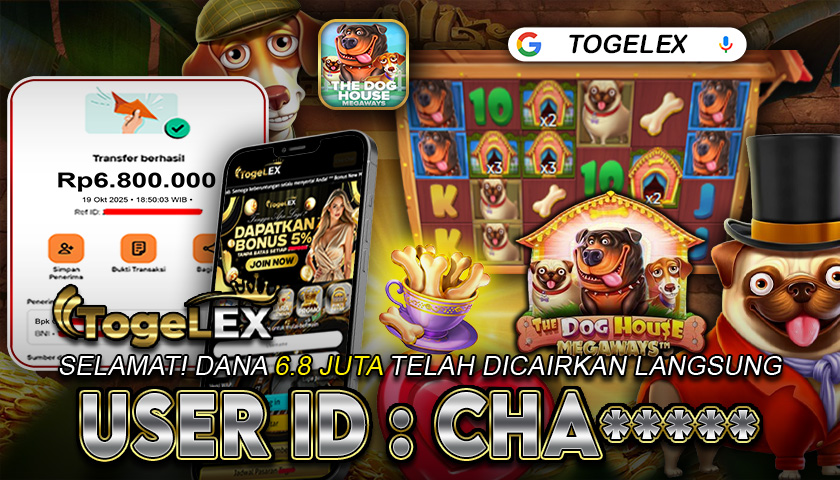 Selamat kepada member dengan User ID: CHA***** yang baru saja meraih kemenangan besar dalam permainan THE DOG HOUSE MEGAWAYS dengan total hadiah sebesar Rp 6.800.000. Setelah melakukan pengajuan withdraw, hanya dalam kurun waktu sekitar 2–5 menit pihak Togelex langsung memproses transfer dana ke rekening pemenang, dan saldo pun berhasil dicairkan tanpa kendala. Bukti transaksi yang kami tampilkan adalah ASLI dan TERVALIDASI, langsung diperoleh dari hasil transfer resmi melalui bank tujuan.