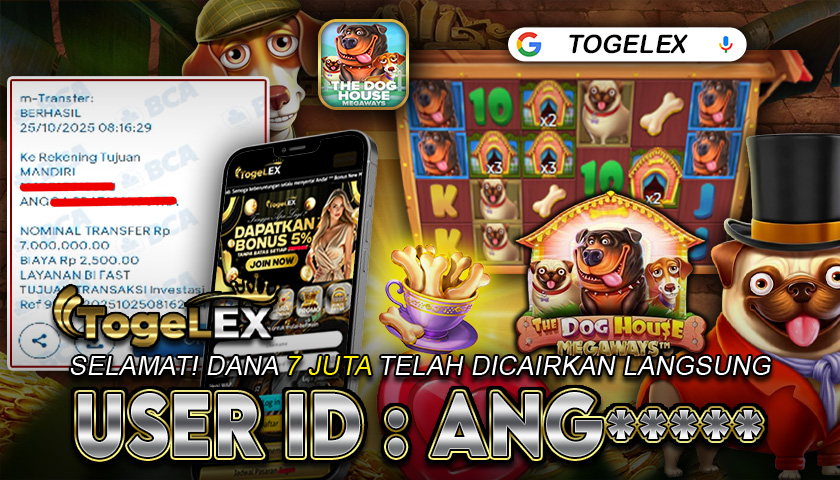 Selamat kepada member dengan User ID: ANG***** yang baru saja meraih kemenangan besar dalam permainan THE DOG HOUSE MEGAWAYS dengan total hadiah sebesar Rp7.000.000. Setelah melakukan pengajuan withdraw, hanya dalam kurun waktu sekitar 2–5 menit pihak Togelex langsung memproses transfer dana ke rekening pemenang, dan saldo pun berhasil dicairkan tanpa kendala. Bukti transaksi yang kami tampilkan adalah ASLI dan TERVALIDASI, langsung diperoleh dari hasil transfer resmi melalui bank tujuan.